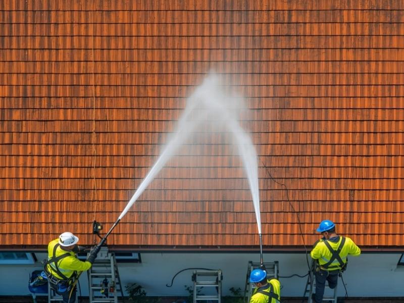 Older roofs with delicate materials may require gentler techniques like soft wash roof cleaning rather than aggressive pressure washing. While this protects the roof surface from damage, it can add to the overall expense because the biocide treatment and low pressure application take more time.